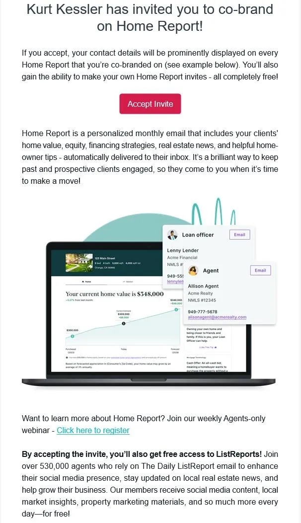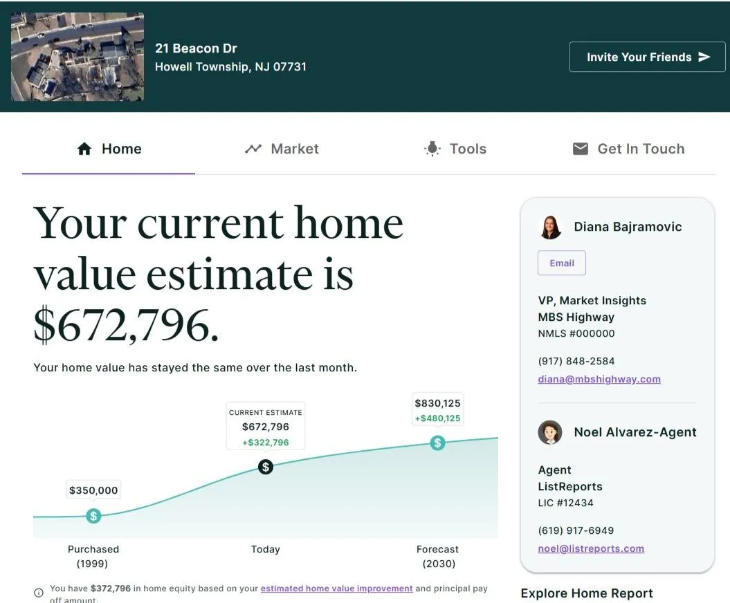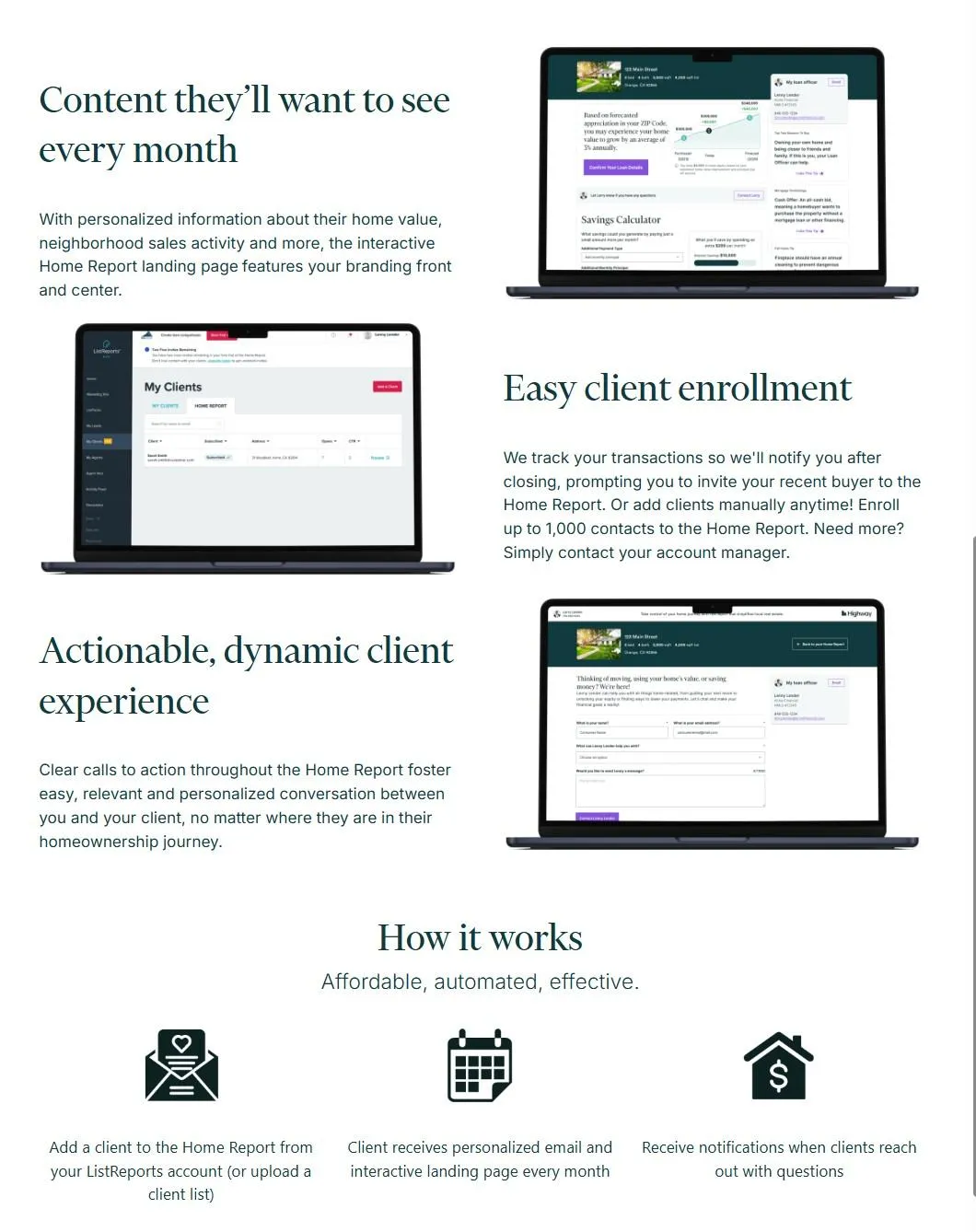 Our closed clients receive a Personalized Monthly Co-Branded Home Report.